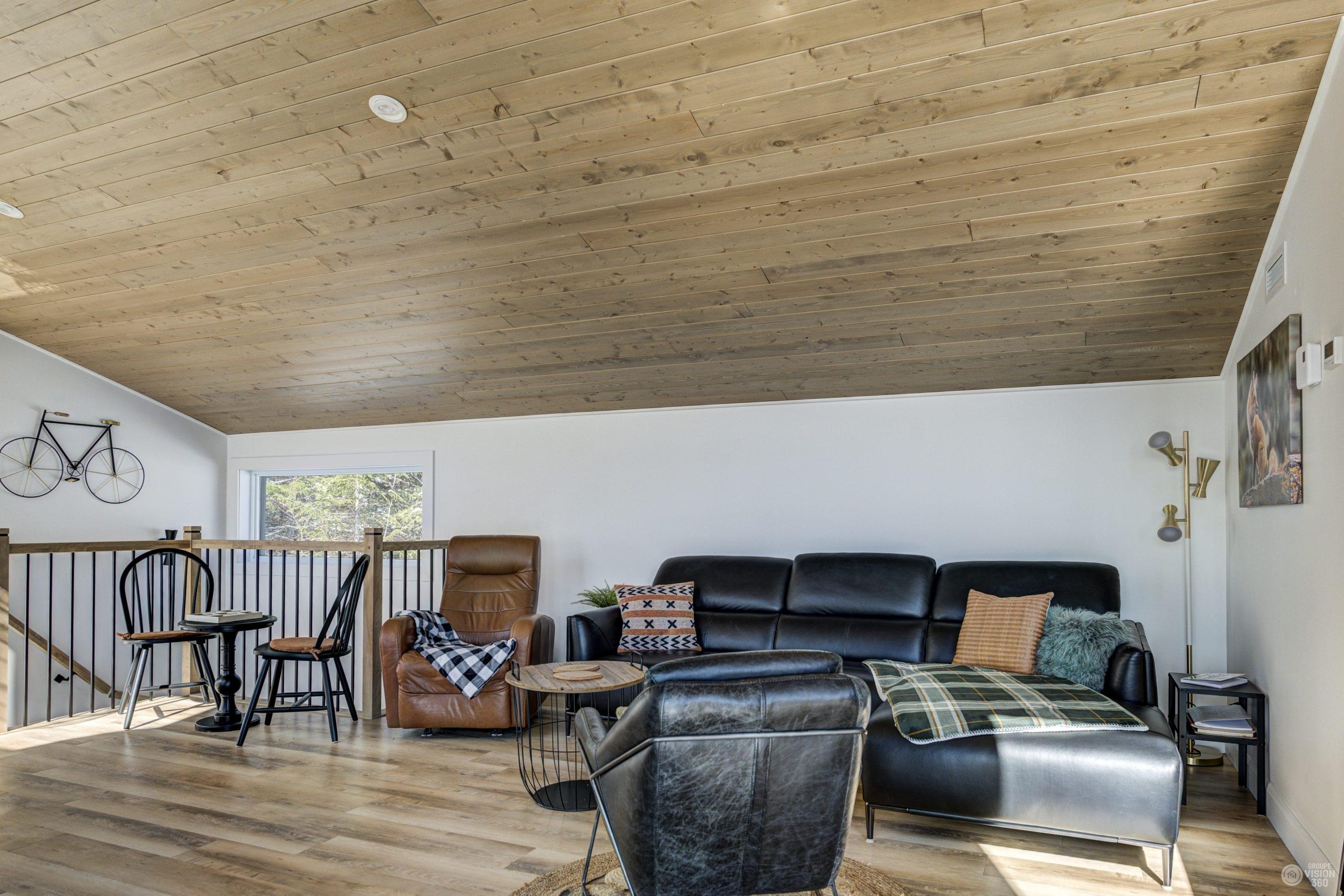 Nous pouvons assurément dire que le revêtement extérieur en bardeaux de cèdre et de bois ainsi que la toiture en tôle ancestrale de cette construction se marient parfaitement bien au décor naturel et à l’ambiance du lac!